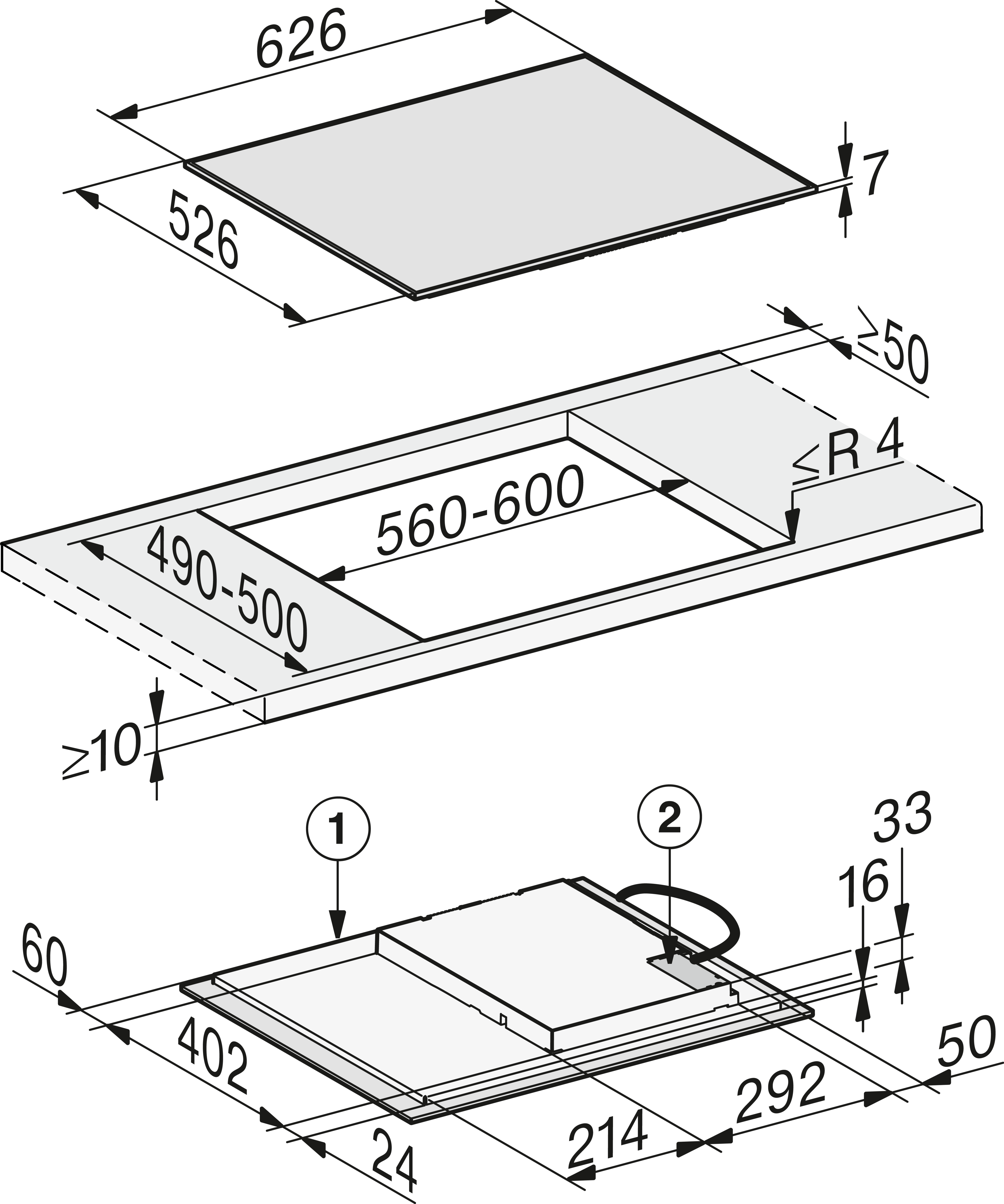 | Rozměry výřezu v mm (šířka) | 560 |