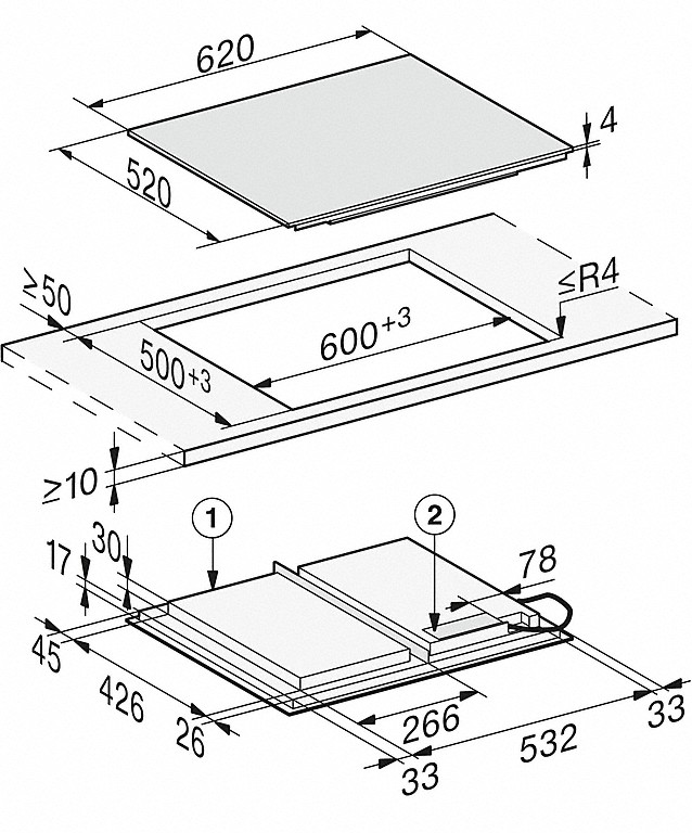 | Vnější rozměr výřezu v mm (šířka) při instalaci se zapuštěním | 624 |