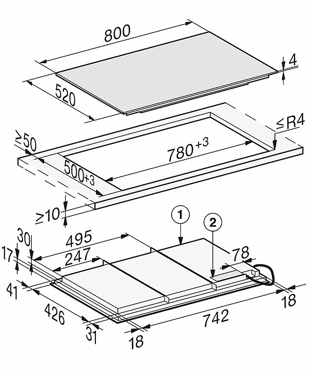 | Vnější rozměr výřezu v mm (šířka) při instalaci se zapuštěním | 804 |