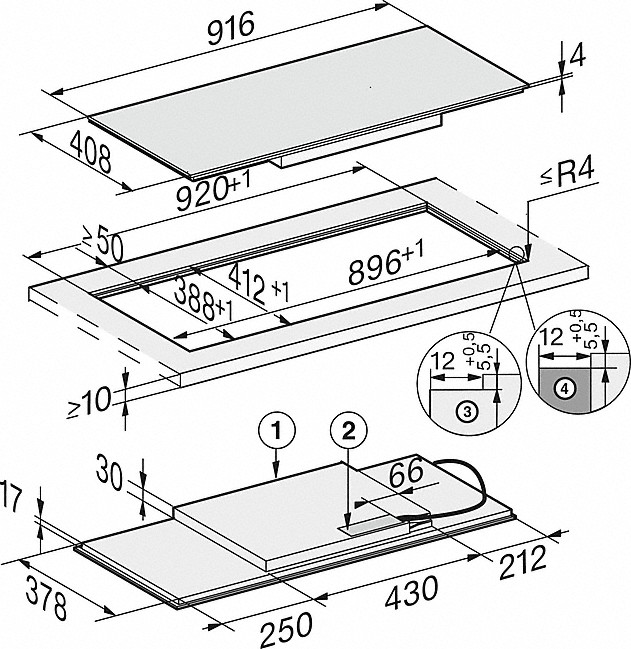 - V šířce 916mm pro instalaci nad pracovní deskou nebo pro zapuštění