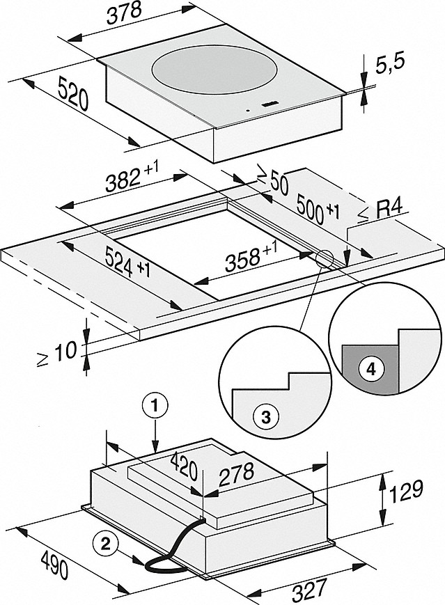 | Vnitřní rozměr výřezu v mm (hloubka) při instalaci se zapuštěním | 500 |