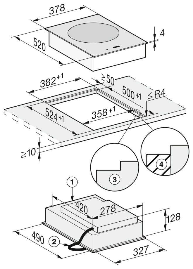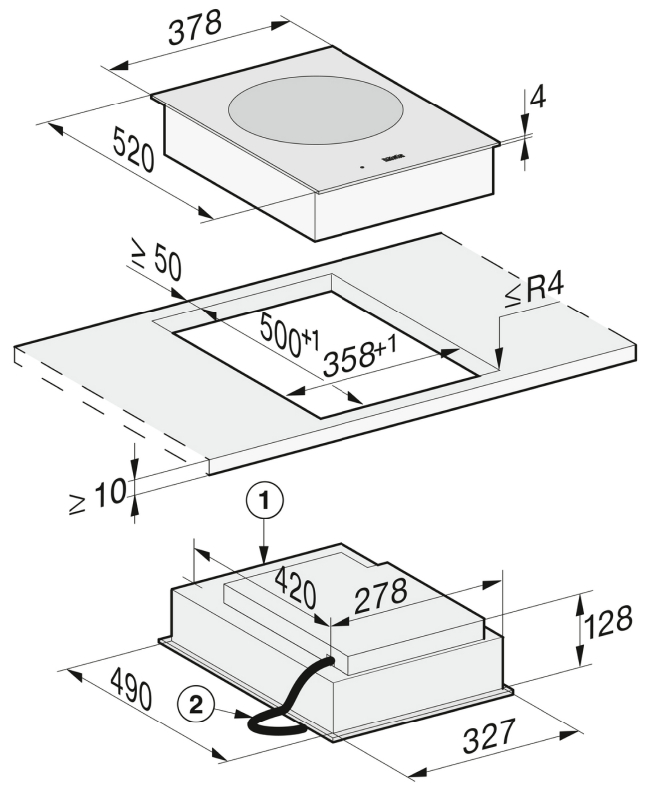 | Vnější rozměr výřezu v mm (hloubka) při instalaci se zapuštěním | 382 |