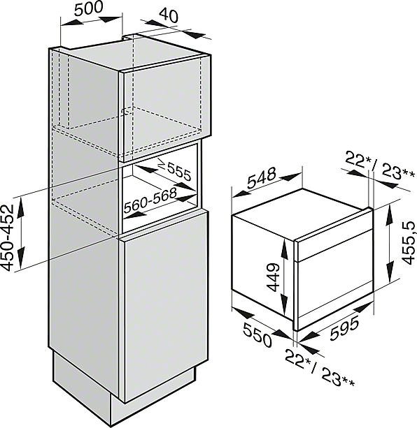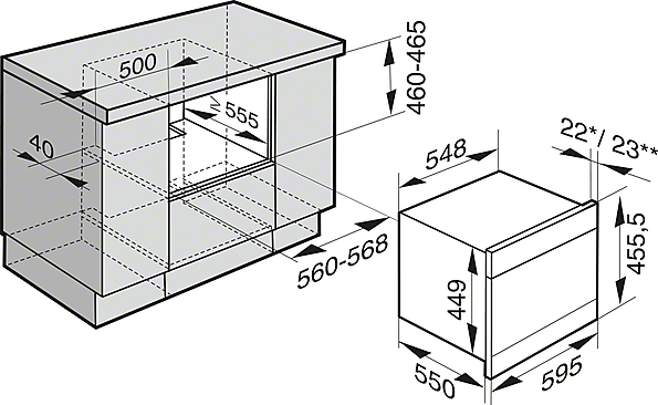 | Šířka výklenku v mm | 560 - 568 |