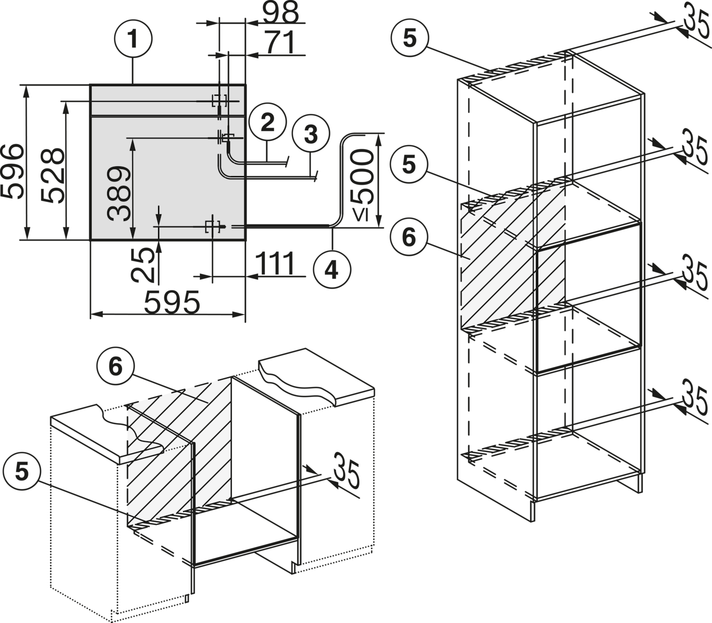 | Šířka výklenku v mm | 560 - 568 |