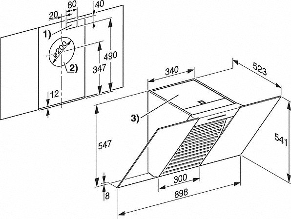 | Výška odsávače v mm | 547 |