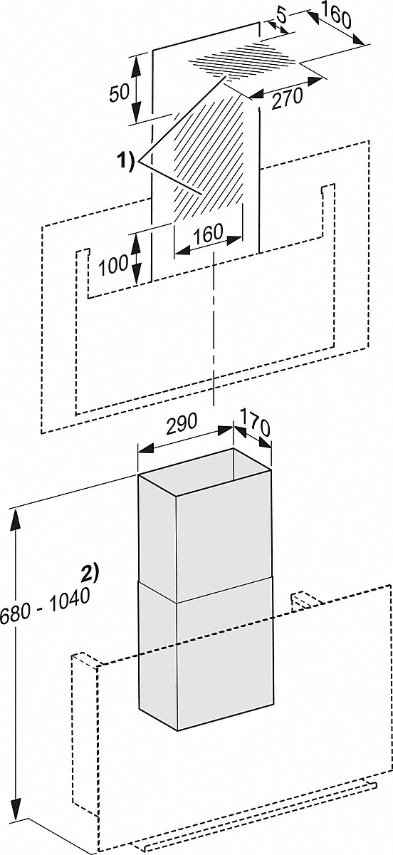 | Celková výška odsávače při cirkulaci v mm | 500 - 500 |