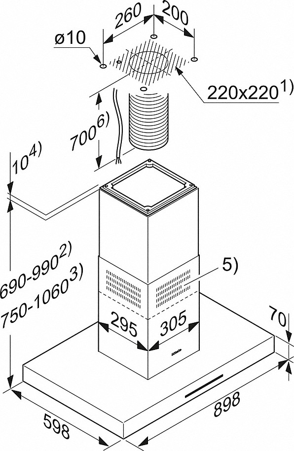 | Celková výška odsávače při cirkulaci v mm | 750 - 1.060 |