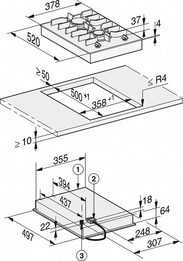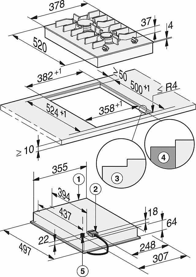| Vnitřní rozměr výřezu v mm (hloubka) při instalaci se zapuštěním | 500 |