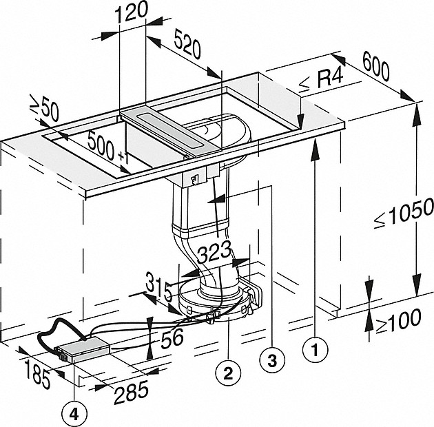 | Vnitřní rozměr výřezu v mm (hloubka) při instalaci se zapuštěním: | 500 |