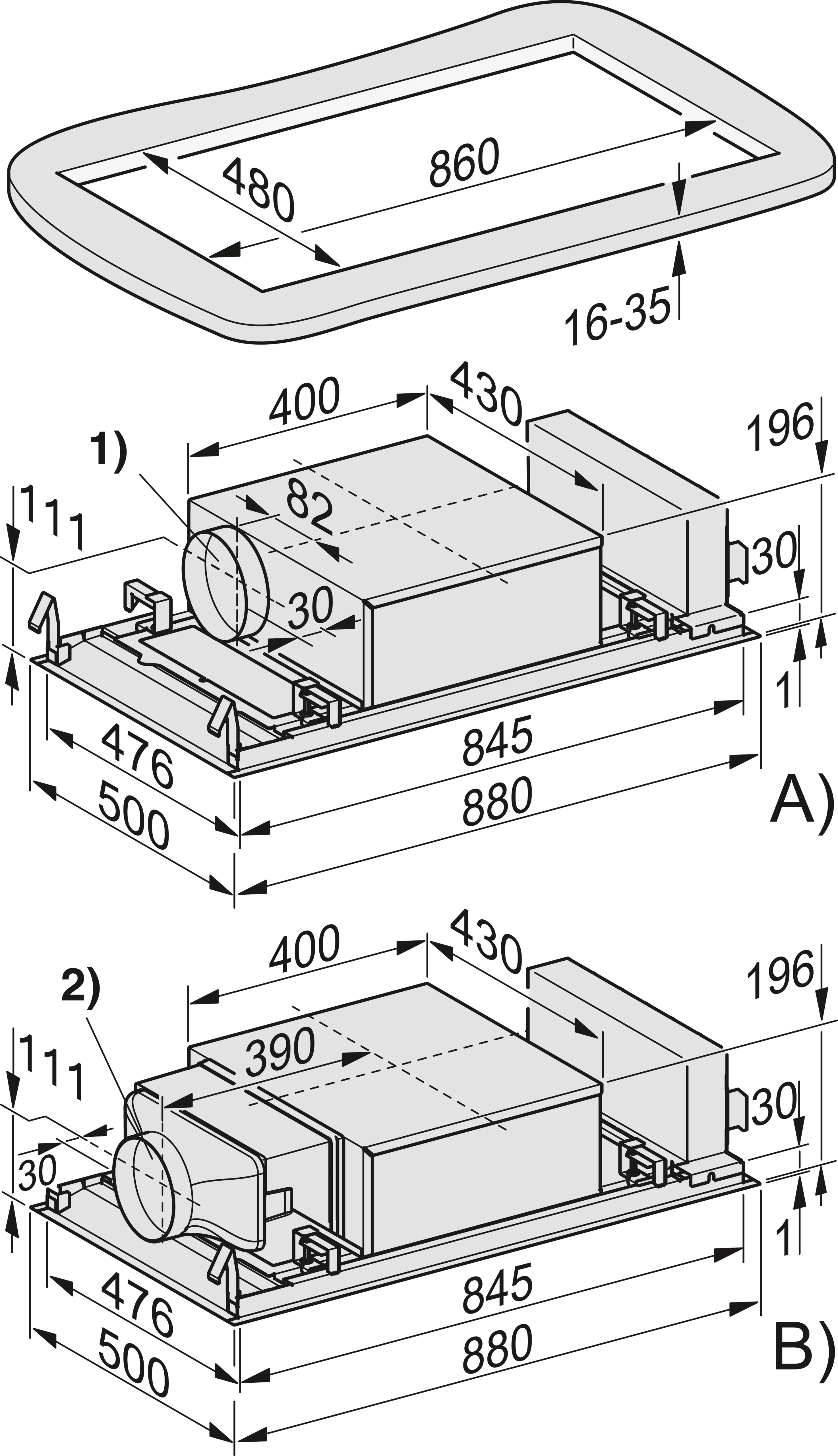 | Celková výška odsávače v provedení odtah a externí v mm | 196 |