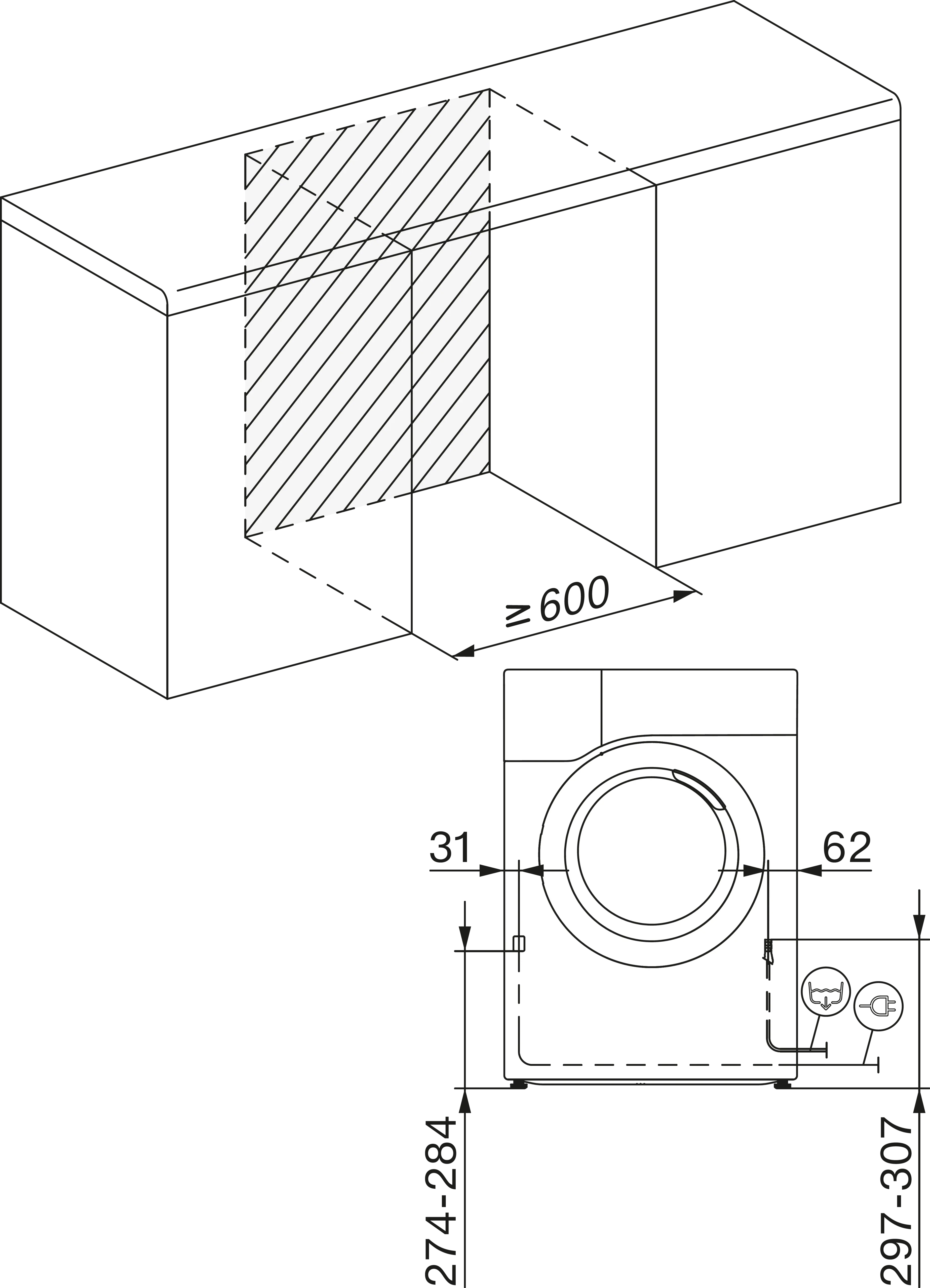 | Hloubka přístroje při otevřených dveřích (mm) | 1.054 |