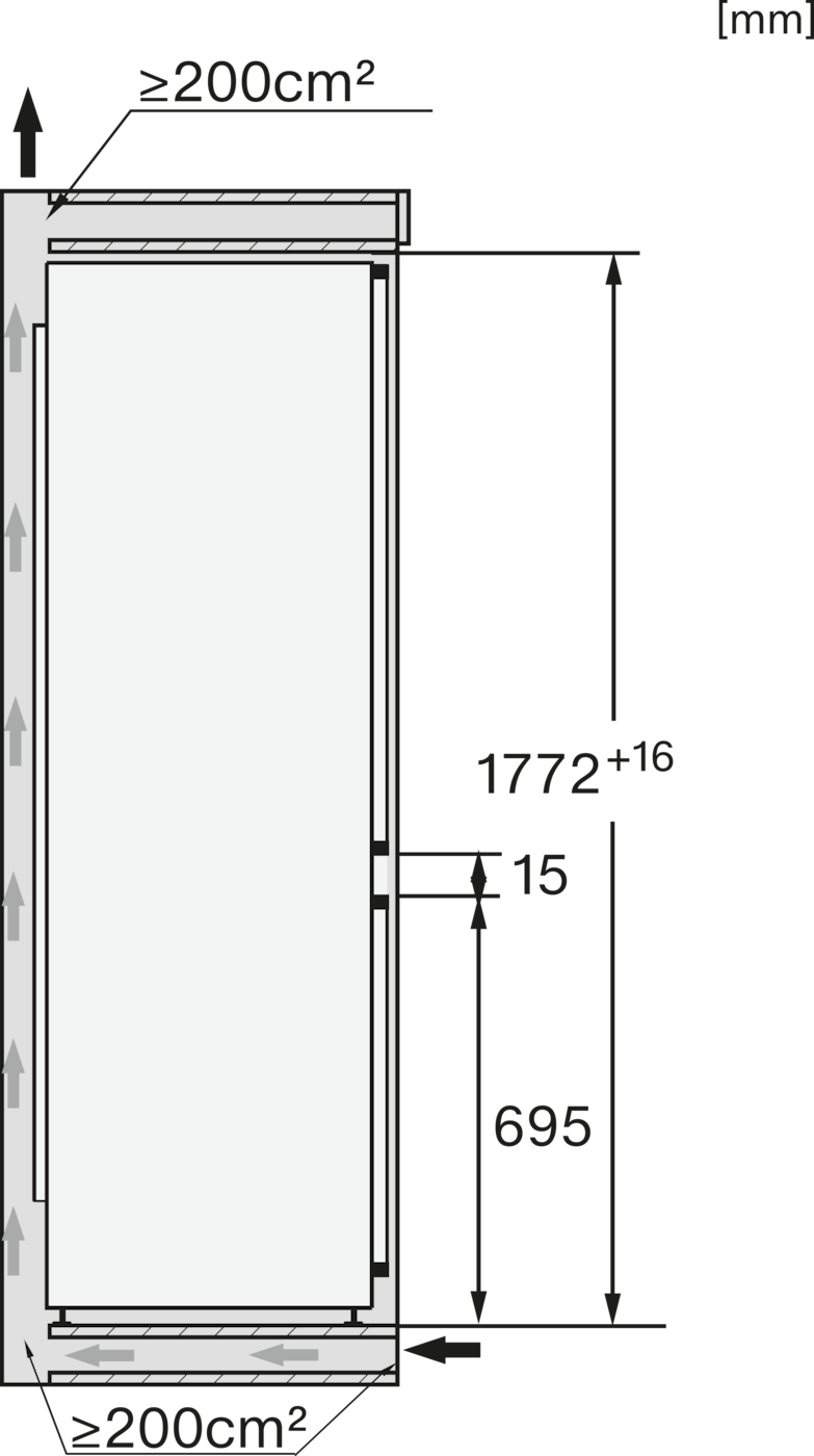 | Výška výklenku v mm | 1.772 - 1.778 |
