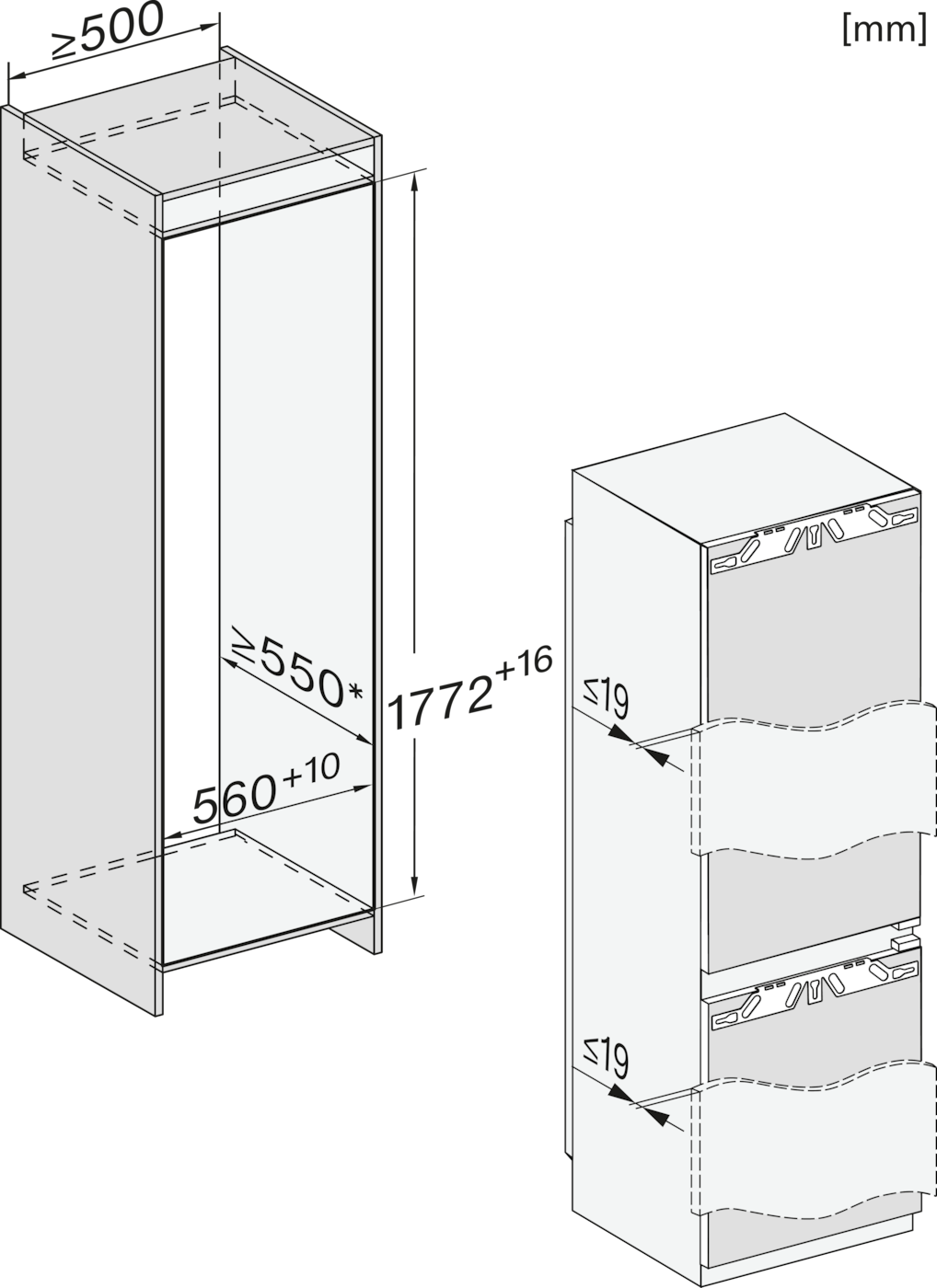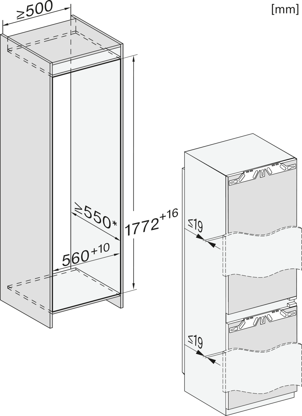 | Výška výklenku v mm | 1.772 - 1.778 |