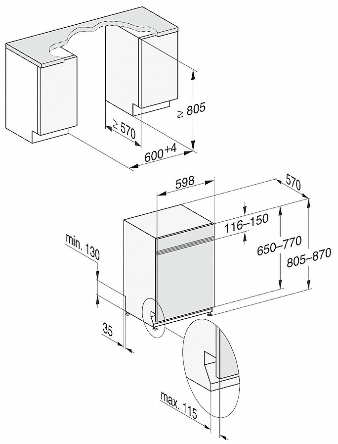 | Výška výklenku v mm | 805 - 870 |
